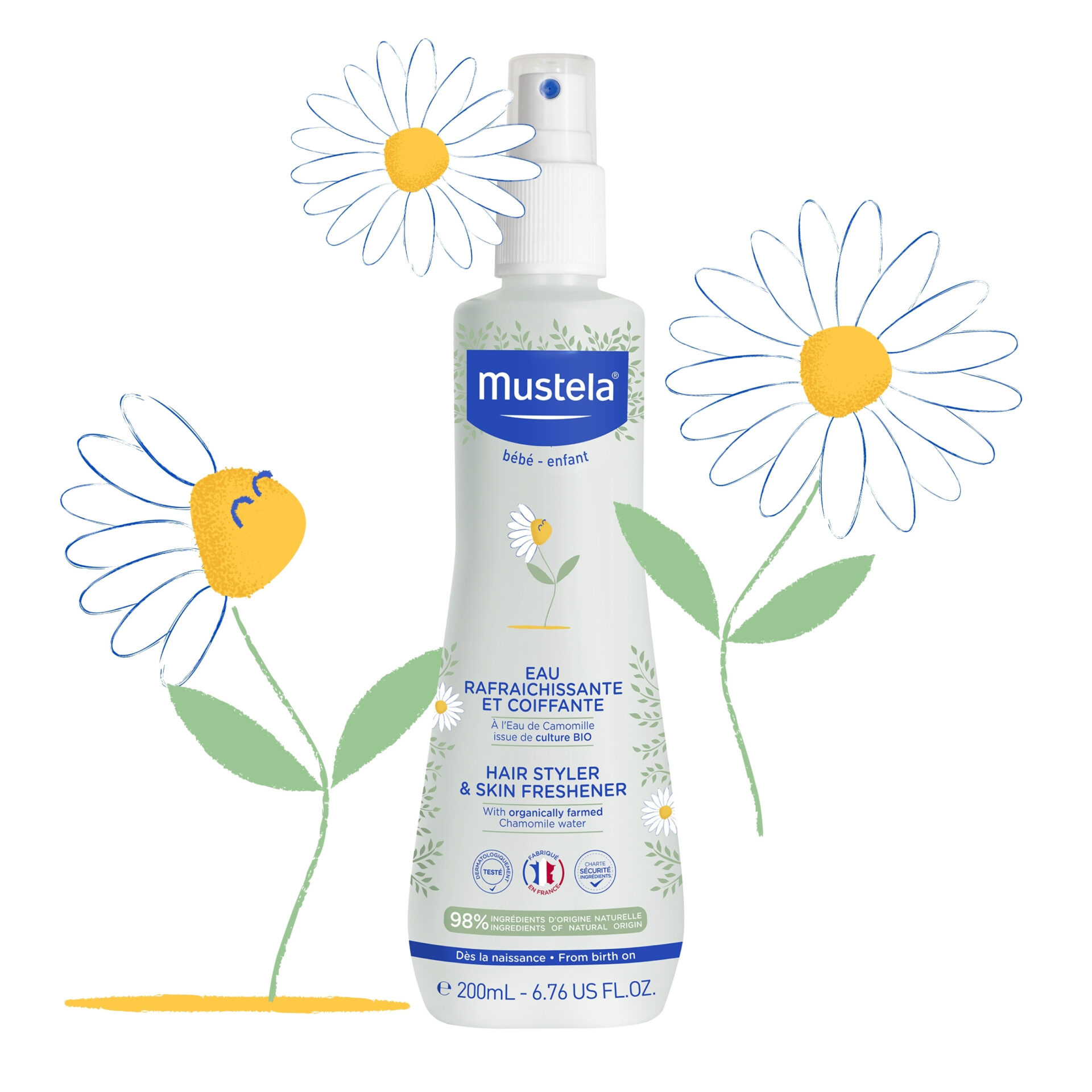 Mustela Hair Styler & Skin Freshener — освежающий спрей для волос и тела, обеспечивающий бережный уход за кожей и волосами вашего малыша. Этот спрей мягко освежает и увлажняет кожу в одном удобном шаге, что делает его отличным дополнением к ежедневному уходу за кожей ребенка. Он также может использоваться для укладки волос малыша между купаниями, сохраняя их аккуратными и хорошо уложенными, а также помогает поддерживать комфорт малыша в более теплую погоду.