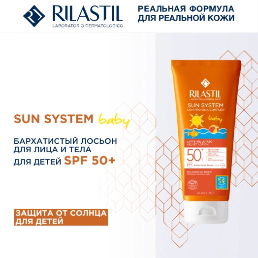 Rilastil SUN SYSTEM BABY Бархатистый лосьон для лица и тела для детей SPF50+, 200 мл